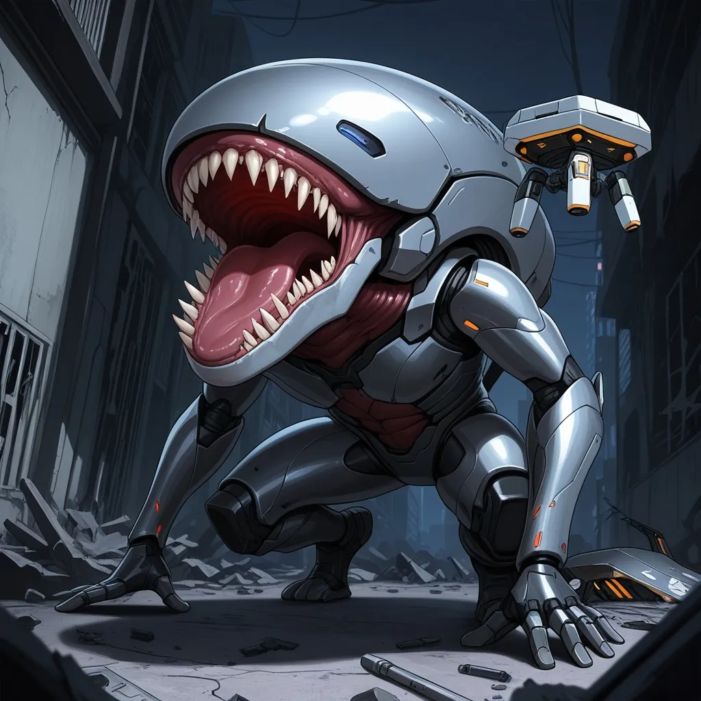 Un dron asesino de la serie, hambriento de vore en cacerías distópicas.